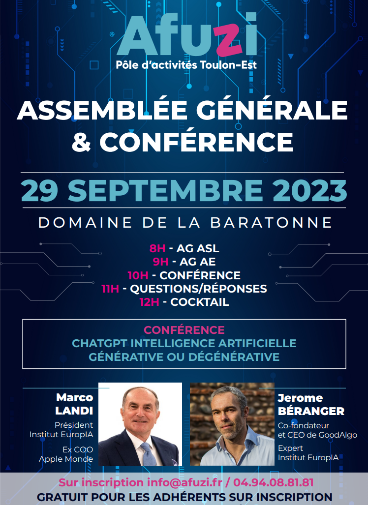 Ce Vendredi 29 Septembre 2023, se tiendra l'assemblée générale annuelle de l'ASL et de l'AE AFUZI, au domaine de la Baratonne à La Garde de 8h à 12h